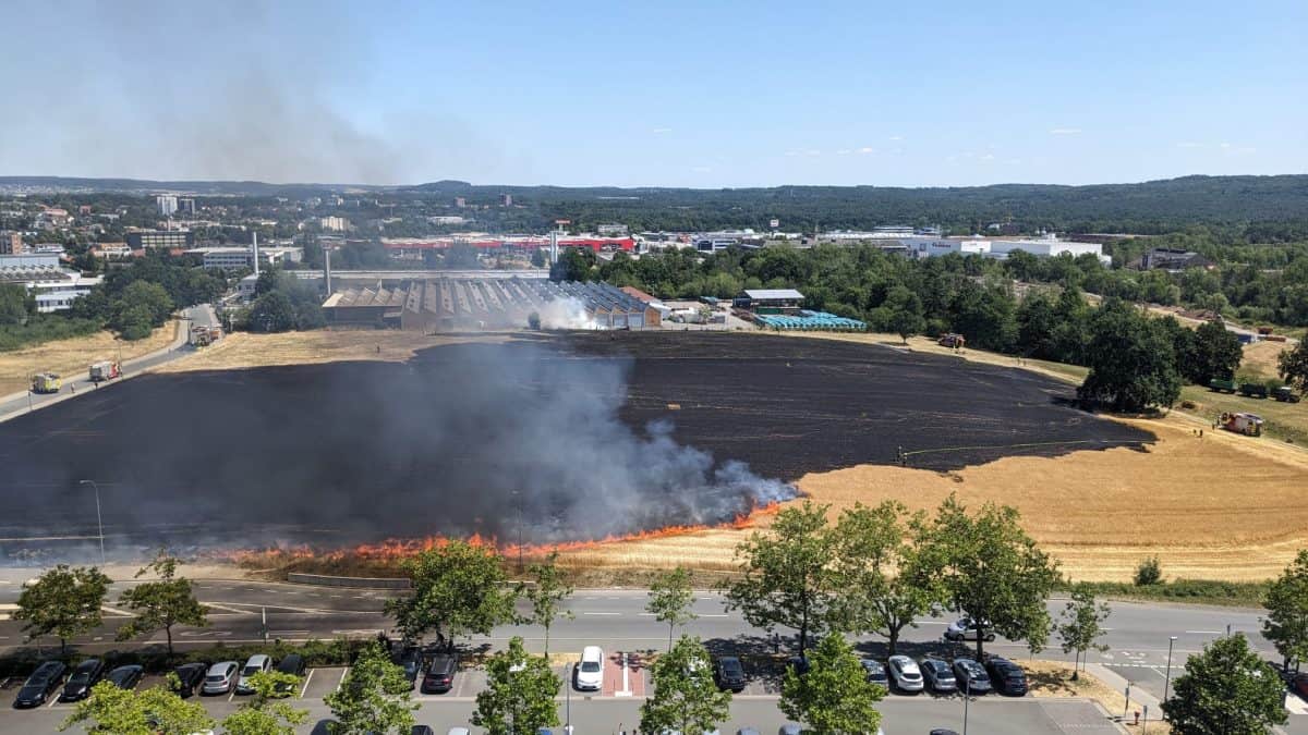 GIESSEN (fw). Heute Mittag kam es zu einem Flächenbrand im Bereich Leihgesterner Weg und Ohlebergsweg in Gießen. Auf einer Fläche von etwa 3 Hektar wurden Acker- und Wiesenflächen Opfer der Flammen, die vermutlich während Mäharbeiten in einem Getreidefeld entstanden sind. Der Einsatz zur Bekämpfung des Feuers erforderte die sofortige Mobilisierung der Berufsfeuerwehr Gießen, die mit 13 Einsatzkräften vor Ort war. Zudem wurden die Einheiten der Freiwilligen Feuerwehr Gießen-Mitte, -Kleinlinden, -Allendorf und -Rödgen mit rund 40 weiteren Einsatzkräften alarmiert, um den Brand einzudämmen. Dank des schnellen Eingreifens der Feuerwehren konnte der Brand unter Kontrolle gebracht werden, wodurch eine Ausbreitung auf einen…